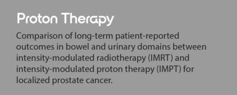 Comparison of long-term patient-reported outcomes in bowel and urinary domains between intensity-modulated radiotherapy (IMRT) and intensity-modulated proton therapy (IMPT) for localized prostate cancer.